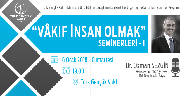 Vâkıf insan olmak için gayret eden/etmek isteyen herkes için, Türk Gençlik Vakfı olarak Marmara Üniversitesi Türkiyât Araştırmaları Enstitüsü işbirliği ile bir seminer dizisi düzenliyoruz.
